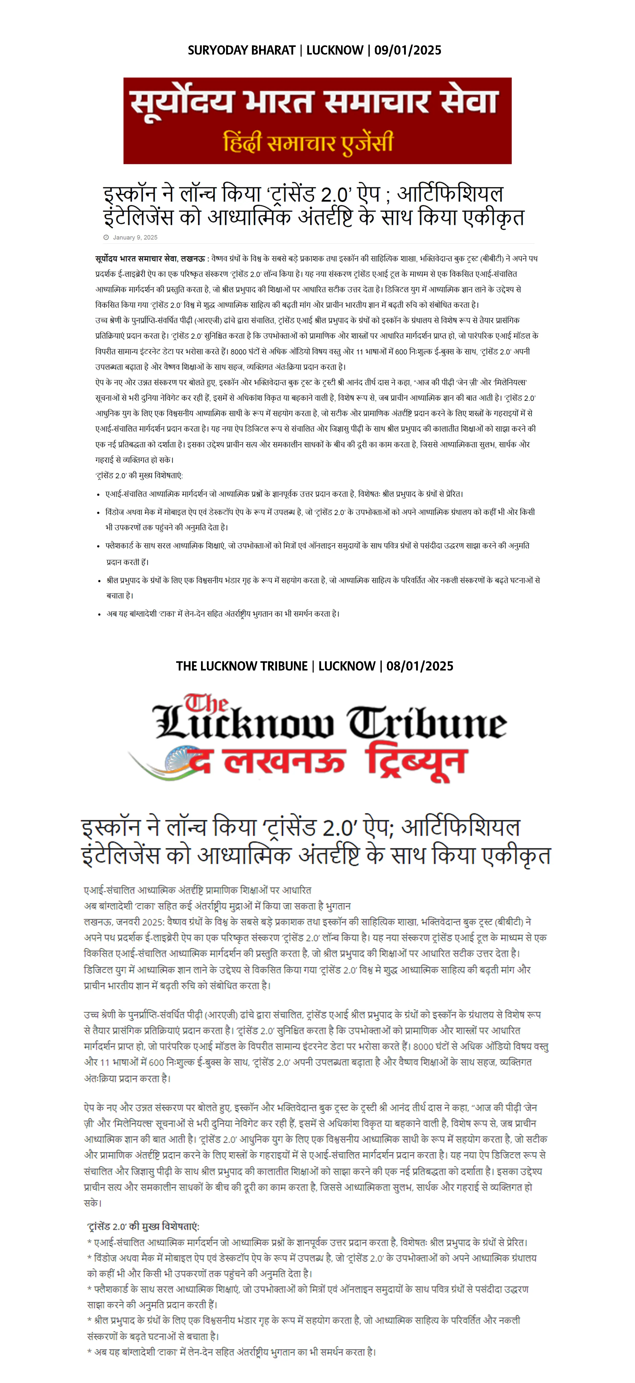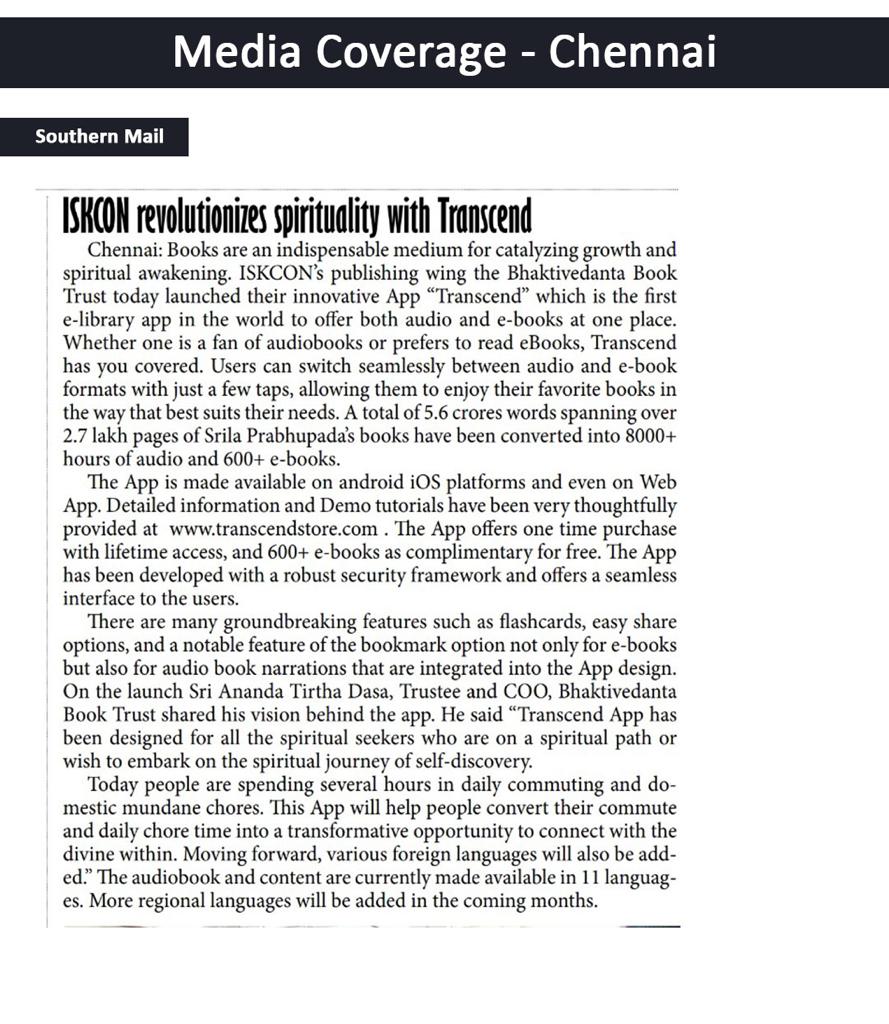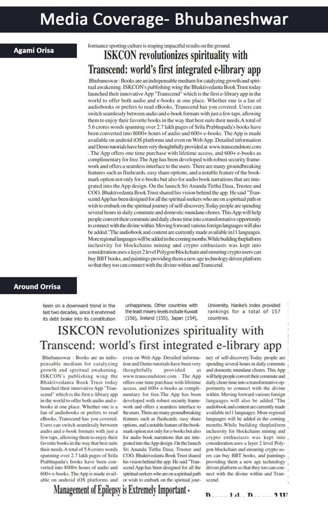Books are an indispensable medium for catalyzing growth and spiritual awakening. ISKCON’s publishing wing the Bhaktivedanta Book Trust today launched their innovative App “Transcend” which is the first e-library app in the world to offer both audio a...