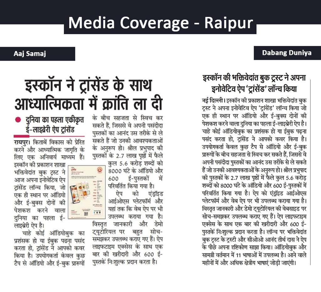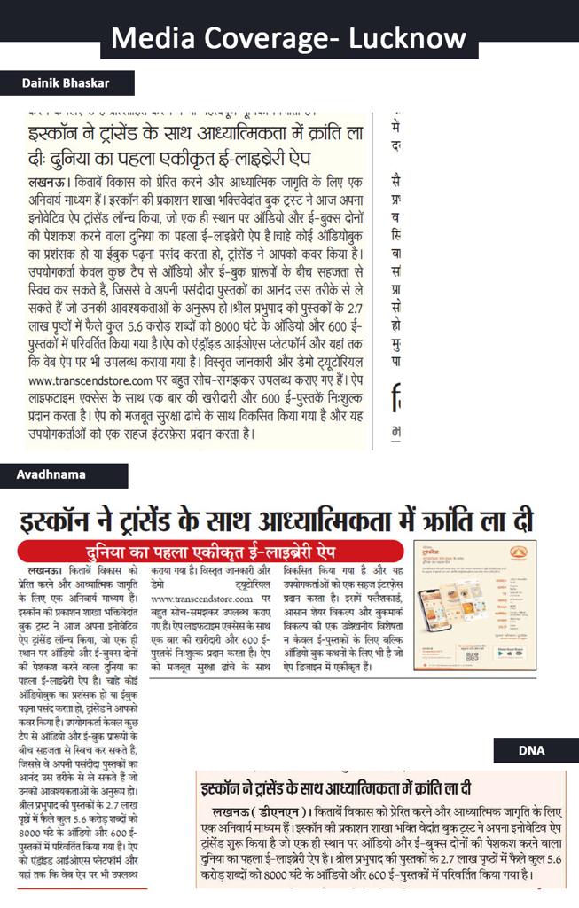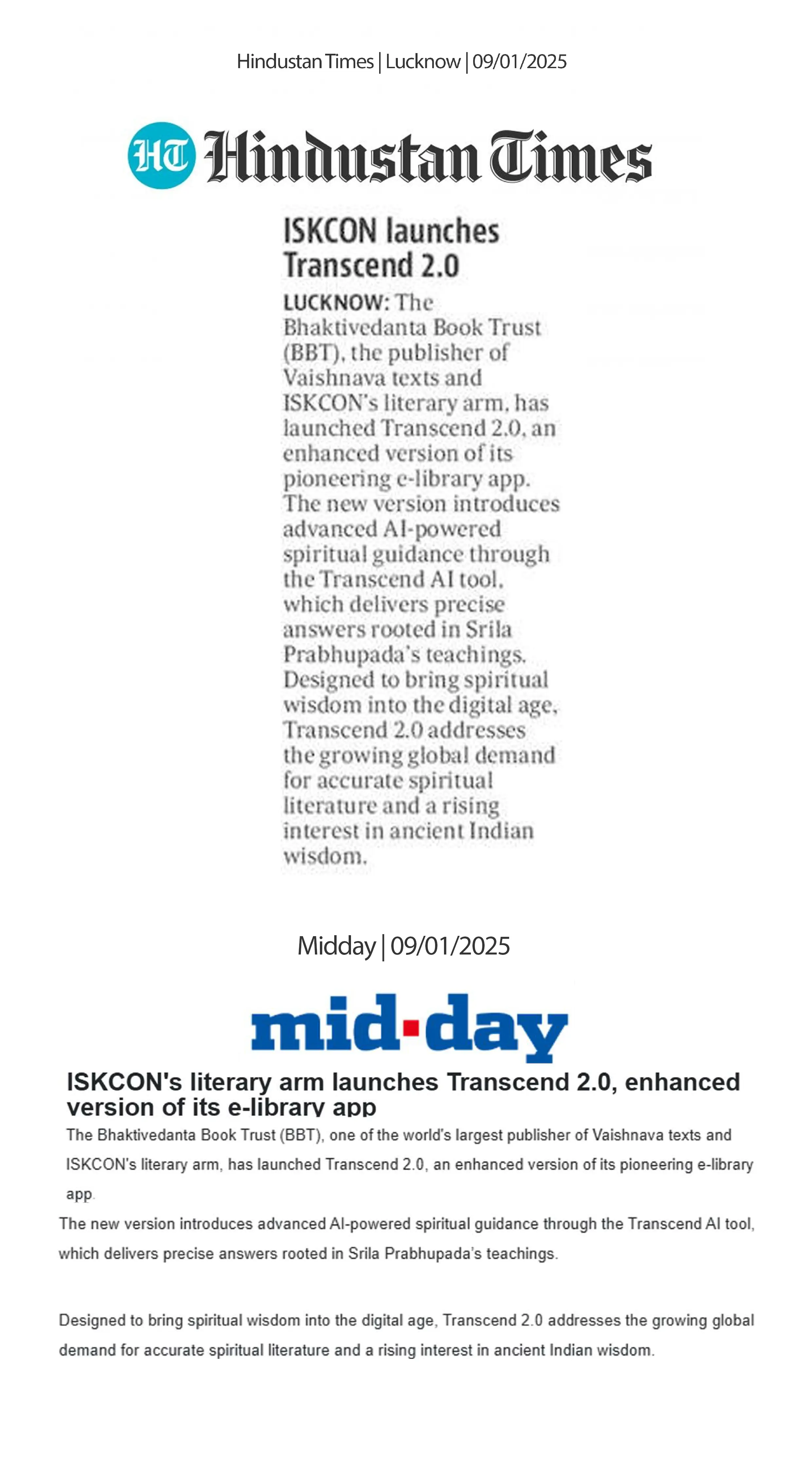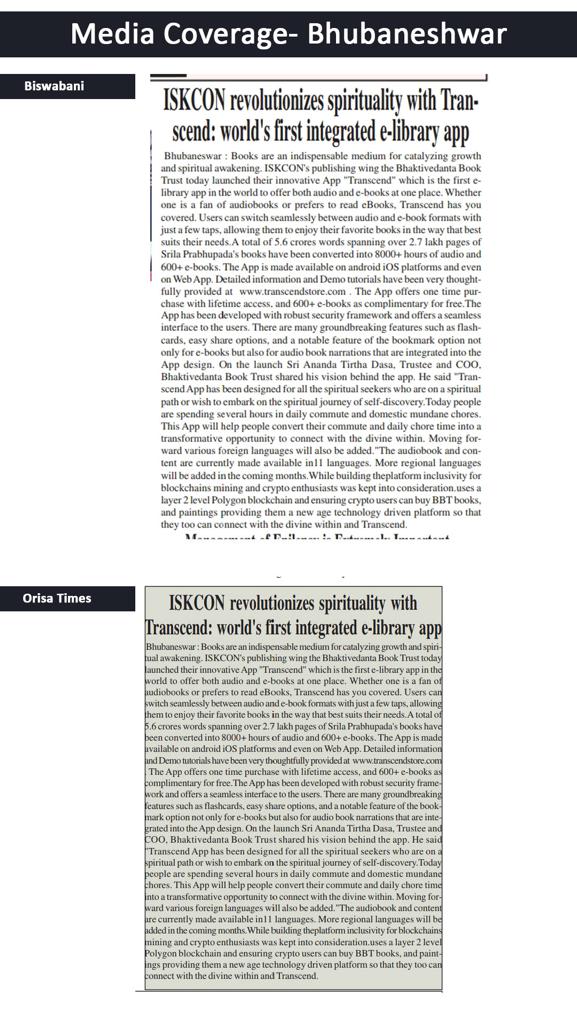 Books are an indispensable medium for catalyzing growth and spiritual awakening. ISKCON’s publishing wing the Bhaktivedanta Book Trust today launched their innovative App “Transcend” which is the first e-library app in the world to offer both audio a...